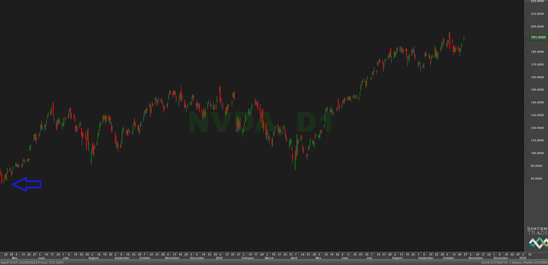 I am illustrating a very important point about how we humans (and Sentient Trader), recognise patterns – we work with the data we are presented with, and tend to jump to conclusions. You might ask why I didn’t prevent Sentient Trader from “jumping to conclusions”. The reason is that this process is an important part of successful pattern recognition … but there isn’t space to discuss that here.