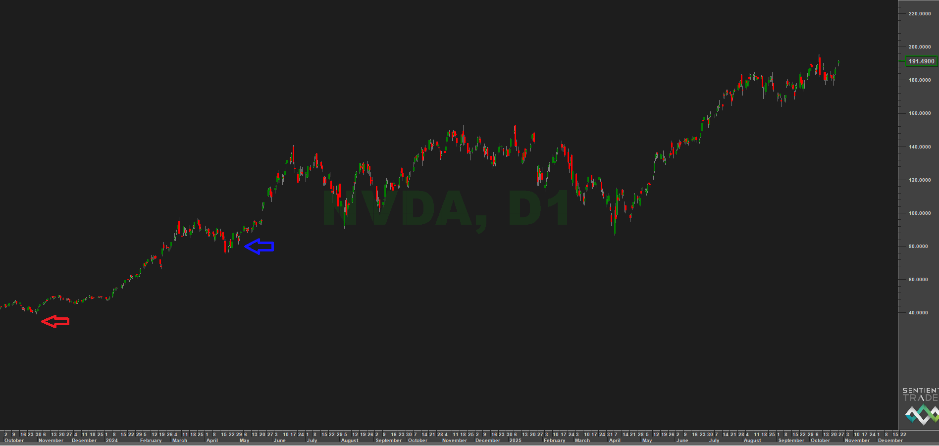 Now look at the left hand edge of the picture above. That looks like a trough, doesn’t it? A blue arrow has been drawn from that trough, which emphasises that. But what if I was to tell you that price keeps moving down if you move further to the left, and that it formed a prominent trough a few bars earlier?